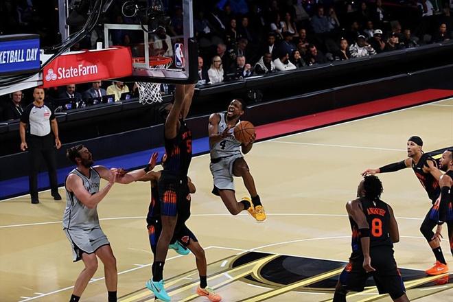 在此前的NBA杯决赛中,纽约尼克斯在末节完成了大逆转,以124比113战胜了圣安东尼奥马刺,成功拿到了本次NBA杯的总冠军。
