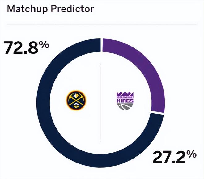 作为对比,掘金队在本赛季引进大瓦兰、约翰逊、布鲁斯-布朗等补强之后,球队替补阵容终于充实,目前以7胜2负的战绩,豪取4连胜,排名西部第三,昔日的总冠军球队又回来了。赛前,美媒ESPN对本场比赛进行了预测,掘金胜率高达72.8%,占据绝对上风,国王胜率则仅为27.2%。