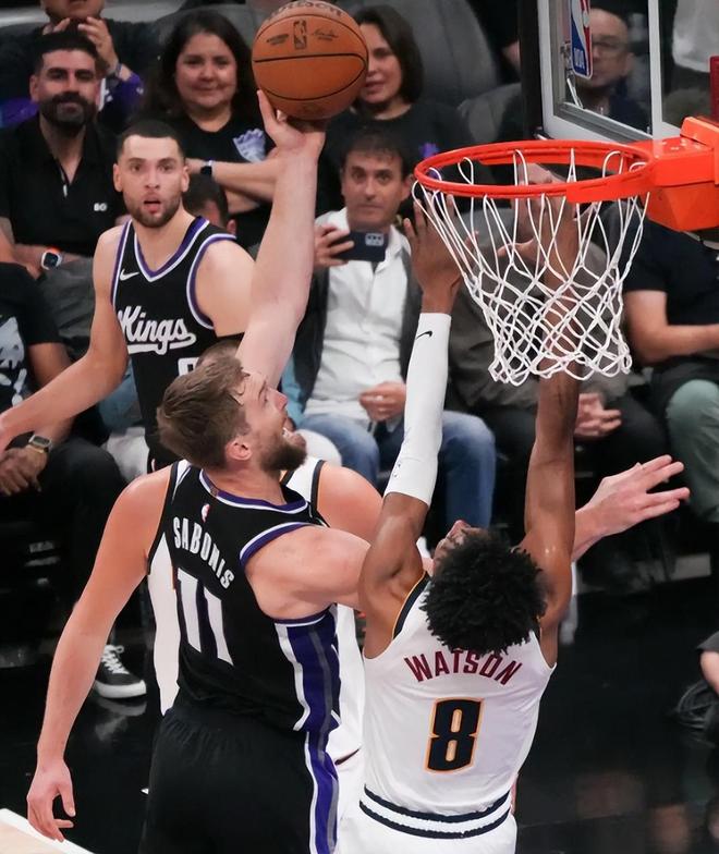 第四节决战,穆雷连续突破走上罚球线,接着三分强投再中,掘金打出一波19-5高潮,已经领先到15分。沃特森飞身扑防威少三分出手被判犯规,领到个人第6次犯规,蒙克后仰中距离再次稳稳命中,还剩3分钟国王追至9分。最终,掘金122-108险胜国王队,豪取5连胜。